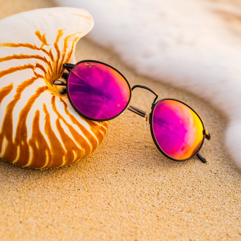 Per ottenere questo risultato siamo partiti dalle nostre lenti color enhancing PolarizedPlus2 Maui Rose® come base e su di essere abbiamo applicato una specchiatura rosa che gli ha conferito questo nuovo look alla moda. MAUI Sunrise è disponibile per occhiali da vista e MyMaui Readers Plus™.